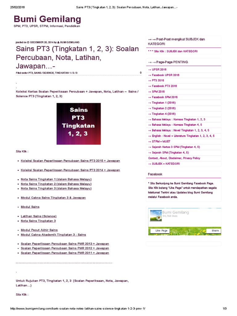 Sains Pt3 Tingkatan 1 2 3 Soalan Percubaan Nota Latihan Jawapan Pdf